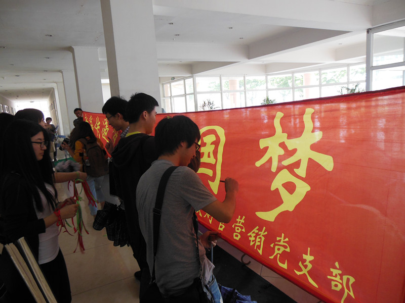 2012年11月29日,中共中央总书记习近平带领新一届中央领导集体参观中国国家博物馆“复兴之路”展览现场。习主席定义了“中国梦”--实现伟大复兴就是中华民族近代以来最伟大梦想,而且满怀信心地表示这个梦想“一定能实现”。 人生如船,梦想是帆,每个人都有一个只属于自己的梦,但我们同属于一个国家,只有每个人的一般梦想都有实现的可能,比如幸福,健康等,这样这个国家才能富强。这个国家富强了,我们的生活、梦想才能更美好,所以每个人的梦又与国家民族兴衰荣辱紧密相连。作为学生党员,10级财管营销支部,在成人网址 校园内开展了“为爱传递梦想”主题活动。希望让更多的同学了解中国梦,心系雅安灾区人名,并珍视自己的梦想,为中华民族的伟大复兴而努力奋斗。