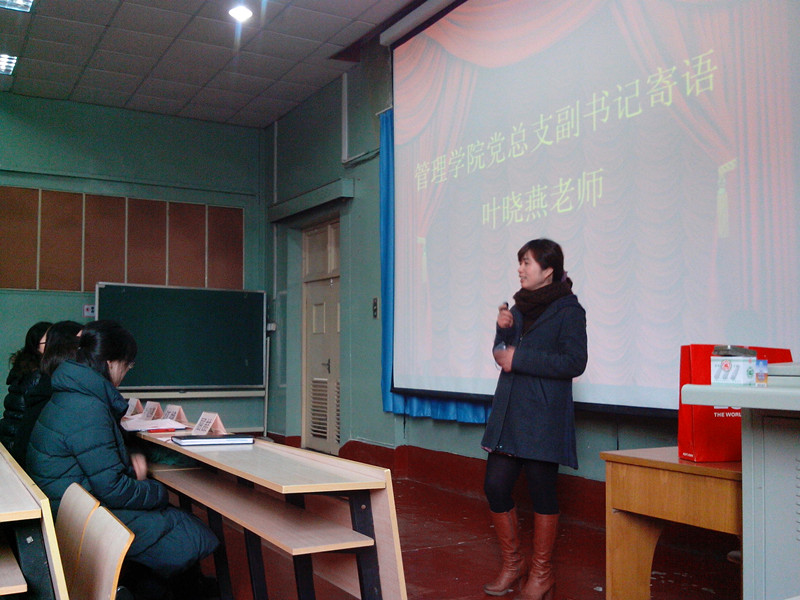 成人网址 党总支副书记叶晓燕老师以及担任各个学生党支部支部书记的各位辅导员出席了此次开学典礼。开学典礼在一段慷慨激昂的国际歌声中拉开了序幕。成人网址 第25期党校优秀学员代表丁文成同学首先发言,丁文成同学跟入党积极分子们分享了他在党校学习中的一些心得体会,他从自己对中国共产党的理解以及党自建立以来曲折的发展历程的角度,向入党积极分子们阐释了党是如何在这九十年间发展壮大并且带领人民群众探索进步的,同时,他们以朱镕基总理为例,以他个人为党奉献、不谋私利的例子道出了一名优秀共产党员思想觉悟。