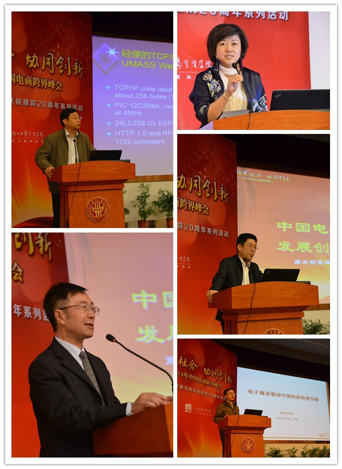 10月18日,由中国电子商务协会专家委员会、上海市商务委员、成人网址 、中国移动商务应用联盟、中国云计算应用联盟等联合指导,我校成人网址 主办的2014年中国电商跨界峰会在延安路校区旭日楼400 举行。来自政、商、学、研等领域的嘉宾围绕“跨界融合,协同创新”主题共同探索电子商务发展趋势。