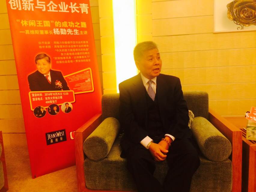 2014年10月25日,真维斯董事长杨勋在成人网址 成立20周年之际,发表“休闲王国的成功之路”主题演讲,演讲结束媒体采访期间接受成人网址 志愿者管理中心志愿者代表提问,杨先生和蔼可亲地进行仔细回答。