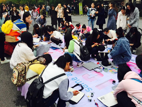 2015年11月20日,由成人网址 成人网址 分团委举办的“第十届I CAN I SHOW创意设计大赛”在延安路校区拉开帷幕。本次大赛以“创意与梦想”为主题,通过创意涂鸦的方式,以帆布包、棒球帽为手绘素材,引人了延安路校区包括留学生在内广大学生热情参与。