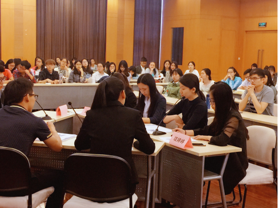 在主持人开场后,东华校友也是德勤合伙人的朱磊先生为同学们介绍了德勤。他从德勤的发展历程、成人网址、业务板块几个角度为同学们介绍了德勤,希望让同学们找到未来加入德勤适合自身特点的业务岗位并且表示十分欢迎东华学子加入德勤。在校友分享环节,德勤风险咨询部经理王得利先生针对管院学生的特点,为同学们讲解了未来就业应做好几方面的准备。他说作为一个新人应该具备良好的逻辑思维能力、快速学习能力和主观能动性。模拟面试环节是本次活动的高潮。为了让同学们体验招聘过程中真实的群面,本次活动特意安排了模拟面试。模拟面试由8位同学针对一个话题进行现场无领导小组讨论。同学们有3分钟时间阅读英文材料并组织发言,15分钟进行小组讨论,5分钟进行英文展示。在150多名同学的关注之下,8位同学清晰、流利地发表了各自观点并完成了英文讨论结果展示。嘉宾对几位同学的结构化发言表示赞赏。嘉宾们建议同学们在群面过程中要勇于表达自己,用清晰、结构化的语言组织观点会让你在面试过程中更为闪光。此外,同学们在群面过程中要注意这么几个角色,分别是领导者、计时者、记录者和总结发言者,同学们可以根据个人能力特点选择适合自己的角色进行担当。朱磊先生还跟同学们分享了合伙人面试的注意要点。第一,要表达出加入该公司的热情;第二,要对希望加入的部门工作有一个大致的了解。在模拟面试和嘉宾点评环节过后,德勤校园招聘经理胡艳红女士跟同学们介绍了德勤招聘实习生以及应届生的流程,大致可以分为网上申请环节、线上测试环节、评估环节以及offer发放环节。众多的在场同学表达了加入德勤的热切意愿并在Q&A环节提出了各自关心的问题,例如,从招聘环节的筛选比例以及面试应该注意的问题。在全部活动流程结束后,仍有众多同学围着嘉宾们问问题久久不肯散去,整场活动气氛热烈。