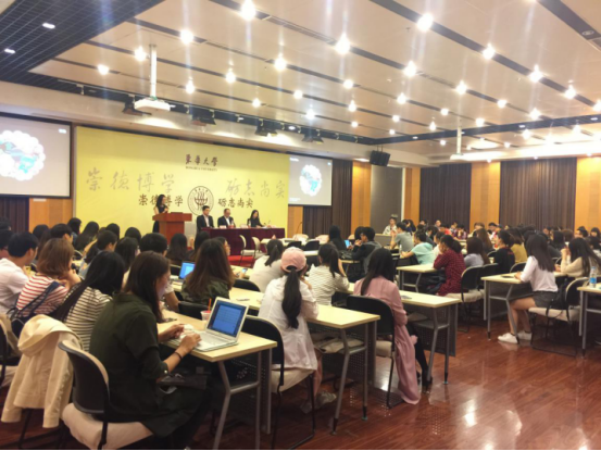 5月16日下午,3位德勤嘉宾和150多名东华学子在三主四楼演讲厅共同完成了德勤的东华宣讲之行。三位嘉宾中两位是东华校友,他们分别是德勤华东区风险咨询服务部的资深合伙人朱磊先生和德勤风险咨询部经理王得利先生,另一位嘉宾是德勤校园招聘经理胡艳红女士。本次活动本着让同学们了解德勤、熟悉招聘流程的目的,为同学们未来进入德勤工作做了良好的铺垫。活动共分为7个环节:主持人开场、企业介绍、校友分享、模拟面试、嘉宾点评、招聘流程介绍以及Q&A。