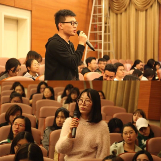 在提问互动环节,严教授积极回答了听众提出的问题,他指出在未来,英语还会是非常重要的,我们需要学会运用我们学过的英语知识。但在此同时,我们也要认真学习母语,认真传承优秀文化。在研究的时候,要多与人交流,这样会收获更多。