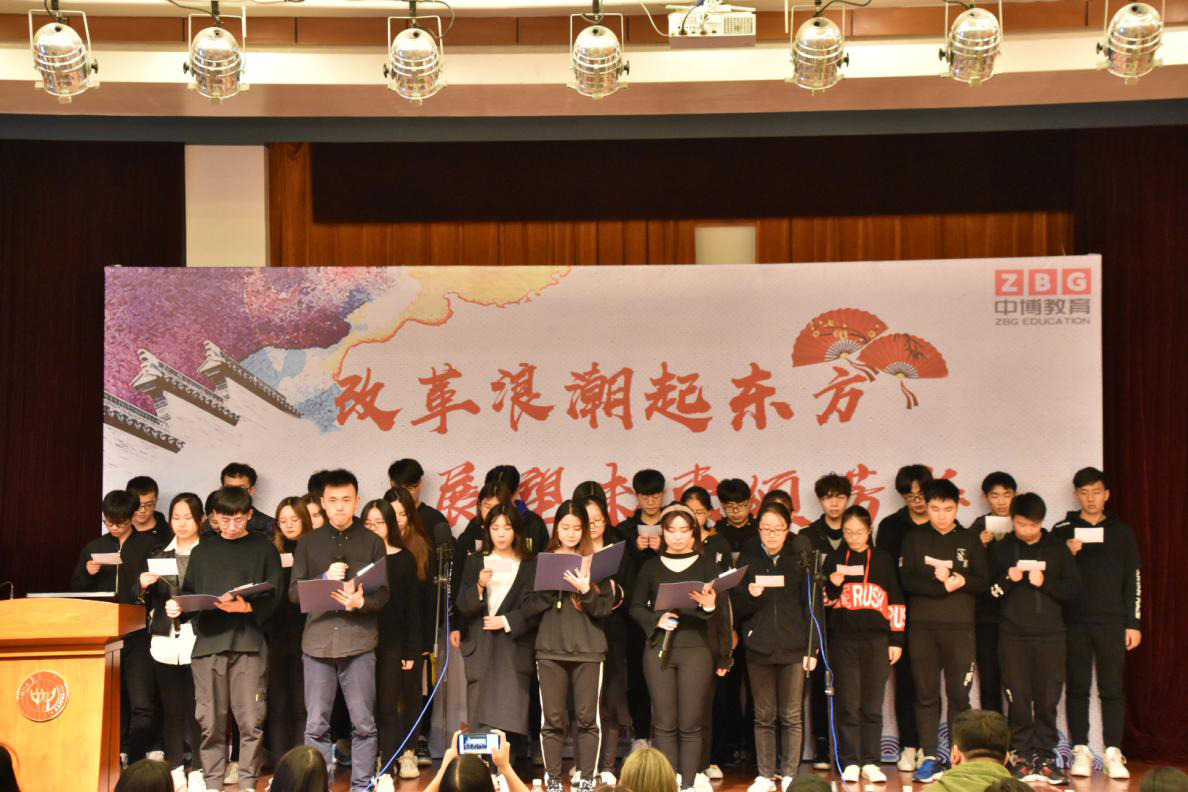 11月27日下午,成人网址 第十一届“树仁”文化周之诗歌朗诵大赛于旭日楼400举行。本次活动以“改革浪潮起东方,展望未来颂芳华”为主题,各团支部通过诗朗诵的形式,歌颂中国号巨轮坚定航向、劈波斩浪的光辉历程,展示当代大学生立鸿鹄志、做奋斗者的恢宏愿景,激励当代大学生不忘初心、牢记使命,接续奋斗。