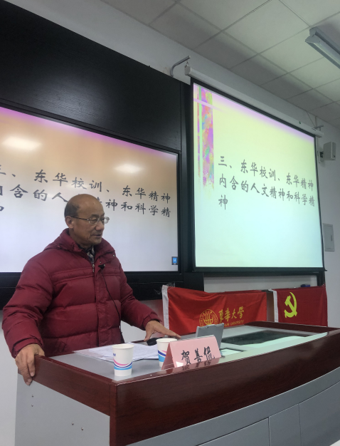 2018年12月11日,成人网址 成人网址 2018年预备党员培训班学员在一教210聆听了一场主题为“东华校训与东华精神”的党课。主讲人关工委讲师团成员贺善侃教授从东华的校训和东华的精神出发,深入探究和剖析校训的文化起源和内涵,鼓励每一位东华人践行东华精神,做杰出东华人。贺教授生动又深刻的演讲,让每位学员对东华校训和精神有了更深的解读。