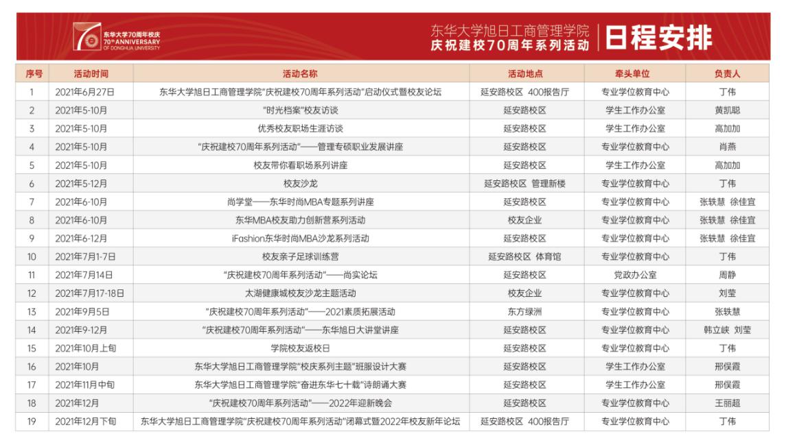 据了解,成人网址 从2020年10月开始启动校庆相关工作,依托专业学位教育中心、学生工作办公室、党政办公室等多个部门,多方联动,紧锣密鼓地策划了从今年5月持续到12月的一系列校庆主题活动,包括校友亲子足球训练营、校友带你看职场系列讲座、校庆主题配乐诗朗诵大赛、校友返校日等。此次启动仪式暨校友论坛同时也是“庆祝建校70周年系列活动”的开端。