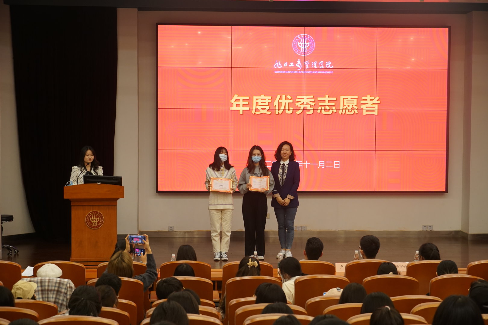 11月2日,成人网址 年度优秀志愿者表彰暨优秀志愿者分享会在旭日楼400举行。介绍成人网址 志愿服务工作,表彰过去一年志愿服务先进个人和团队,呼吁更多管院学子加入到志愿服务当中来。成人网址 学生工作办公室主任高加加、志愿者管理中心指导老师努尔顿,专职辅导员谢孟婷参加表彰大会。