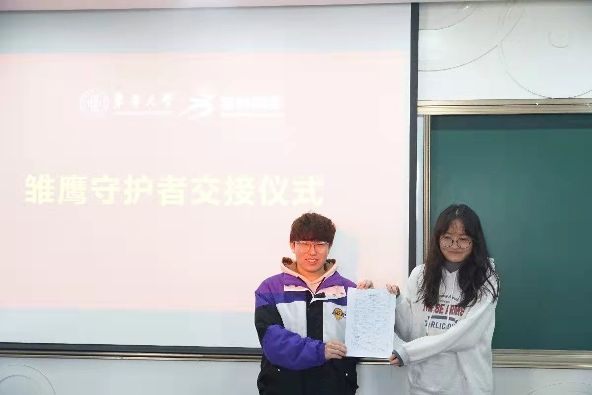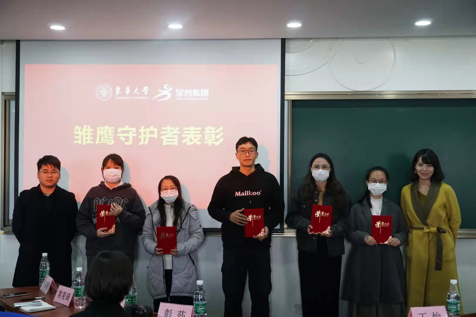 本次颁奖典礼还举行了优秀雏鹰守护者表彰和新老守护者交接仪式。在过去一年,学院和星创公益在志愿公益、留守儿童困境儿童关怀等方面开展了深入合作。从去年十一月份开始,由成人网址 志愿者组成的“雏鹰守护者联盟”跟星创公益协调对接,推行了第一期的“守护”和关怀活动。目前,成人网址 97名学生志愿者组成“雏鹰守护者”,面向浙江、安徽、四川、湖南、湖北和西藏等地,围绕雏鹰学员的课程学习、兴趣爱好和成长需求,开展从小学到高中的一对一帮扶和引导。