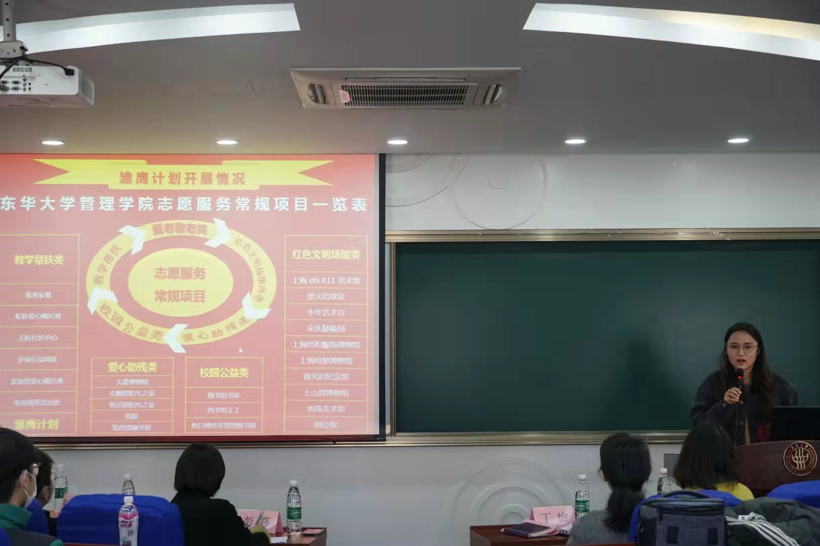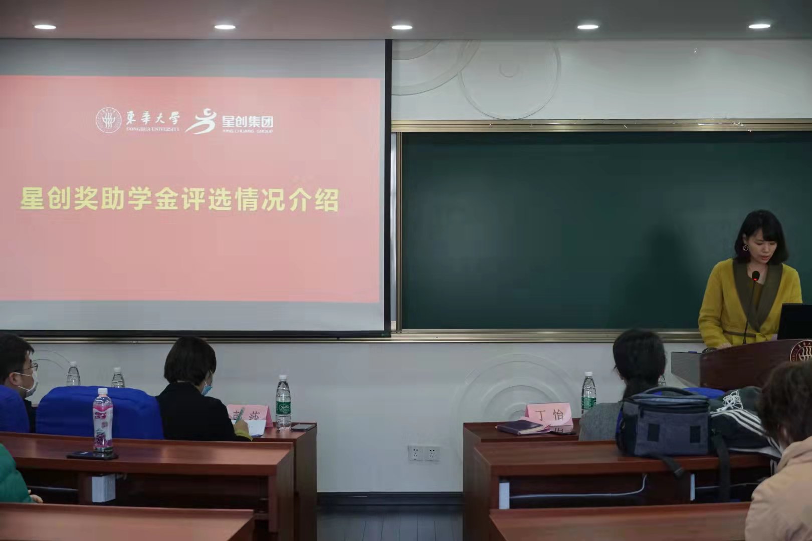 魏冰介绍星创奖助学金和志愿者奖励金评选情况并回顾2021年星创奖学金获得者在过去一年中的学习、科创、社会实践和志愿公益活动情况。