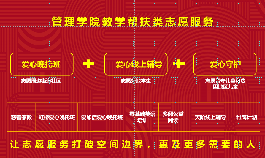 据悉,成人网址 党委高度重视大学生志愿公益活动,对学生利用 空余的时间做志愿服务给与最大的鼓励和支持。成人网址 志愿者管理中心成立25年以来秉持“志存于心、愿携于手”的初心,扎实开展各类志愿服务实践,目前开展阅公益阅读志愿活动在内的7个教学帮扶类志愿服务。教学帮扶类志愿活动覆盖从幼年到老年全年龄段的教学,实现了从留守儿童到贫困儿童的社会需求,线上线下双线贯通,用爱传递温暖,让知识不再被距离阻隔。