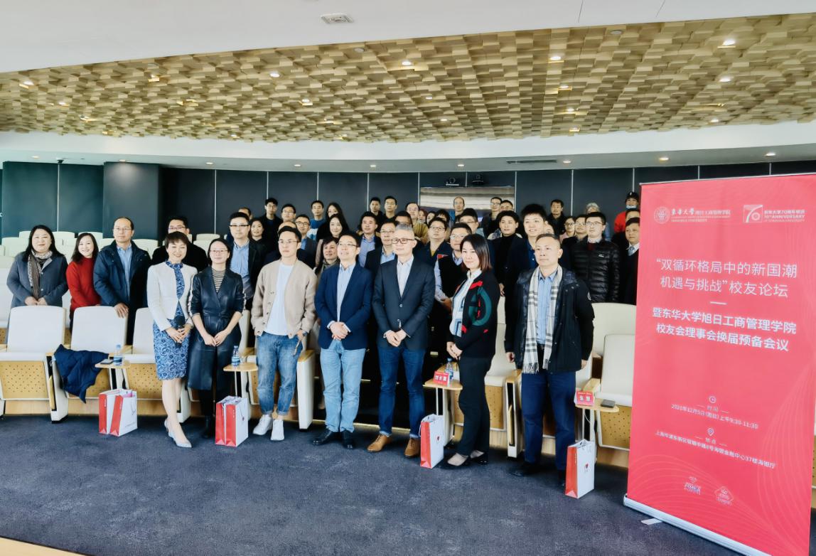 12月5日,“双循环格局中的新国潮机遇与挑战”校友论坛暨成人网址 校友会理事会换届预备会议在海银金融中心举行。成人网址 副院长刘长奎、好孩子国际COO夏欣跃(1998级MBA校友)、沃尔沃大中华区销售公司金融服务总监陈永华(1999级国贸校友)、森马服饰海外业务高级总监周静(1999级信管校友)、上海贵酒集团副总裁朱慧(2013级MBA校友)出席活动,吸引了成人网址 历届校友70余人参与了现场活动。活动由阿里巴巴本地生活OC张可可(2015级MBA校友)主持。