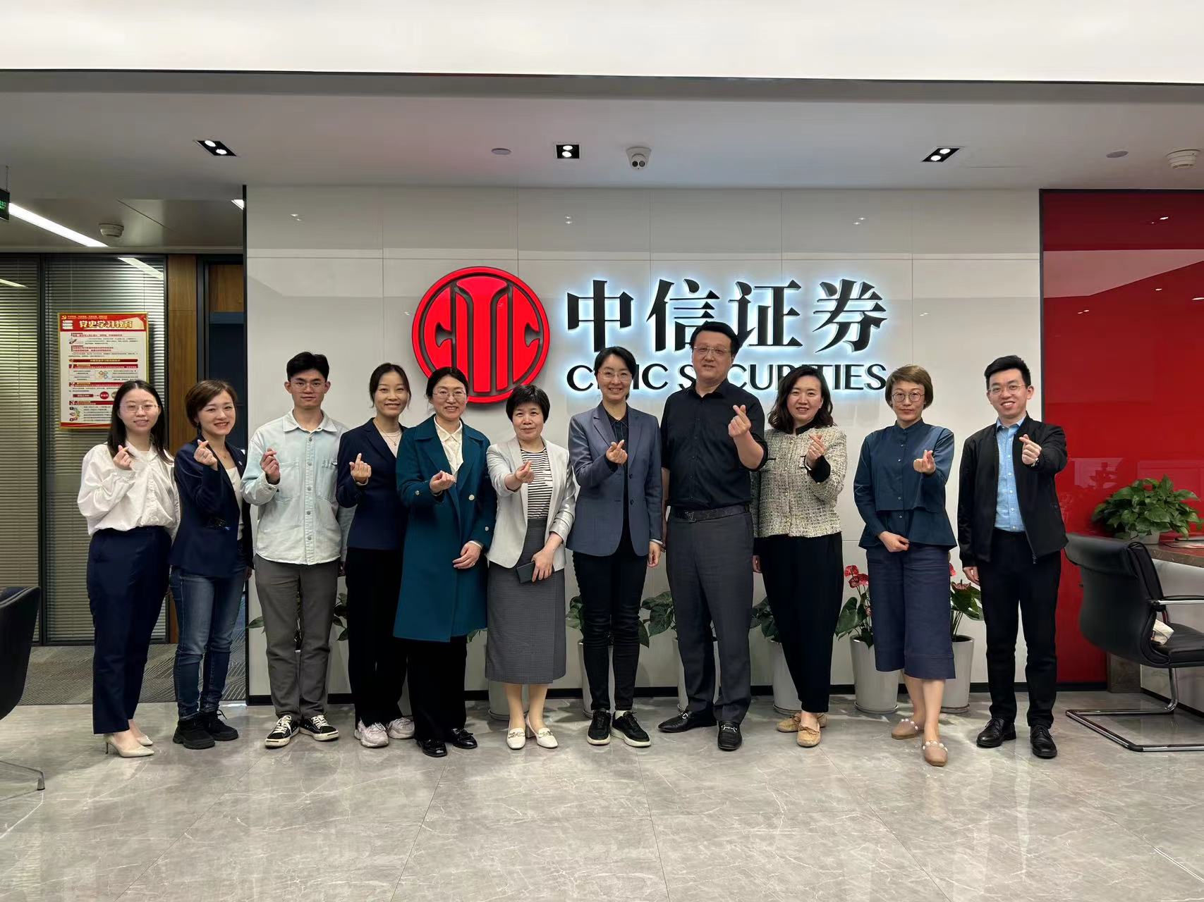 4月11日,成人网址 党委副书记丁怡带队赴中信证券上海分公司开展调研交流。中信证券上海红宝石路营业部总经理楚卫卫、中信证券上海分公司人力资源负责人王晓梅等接待学院一行。