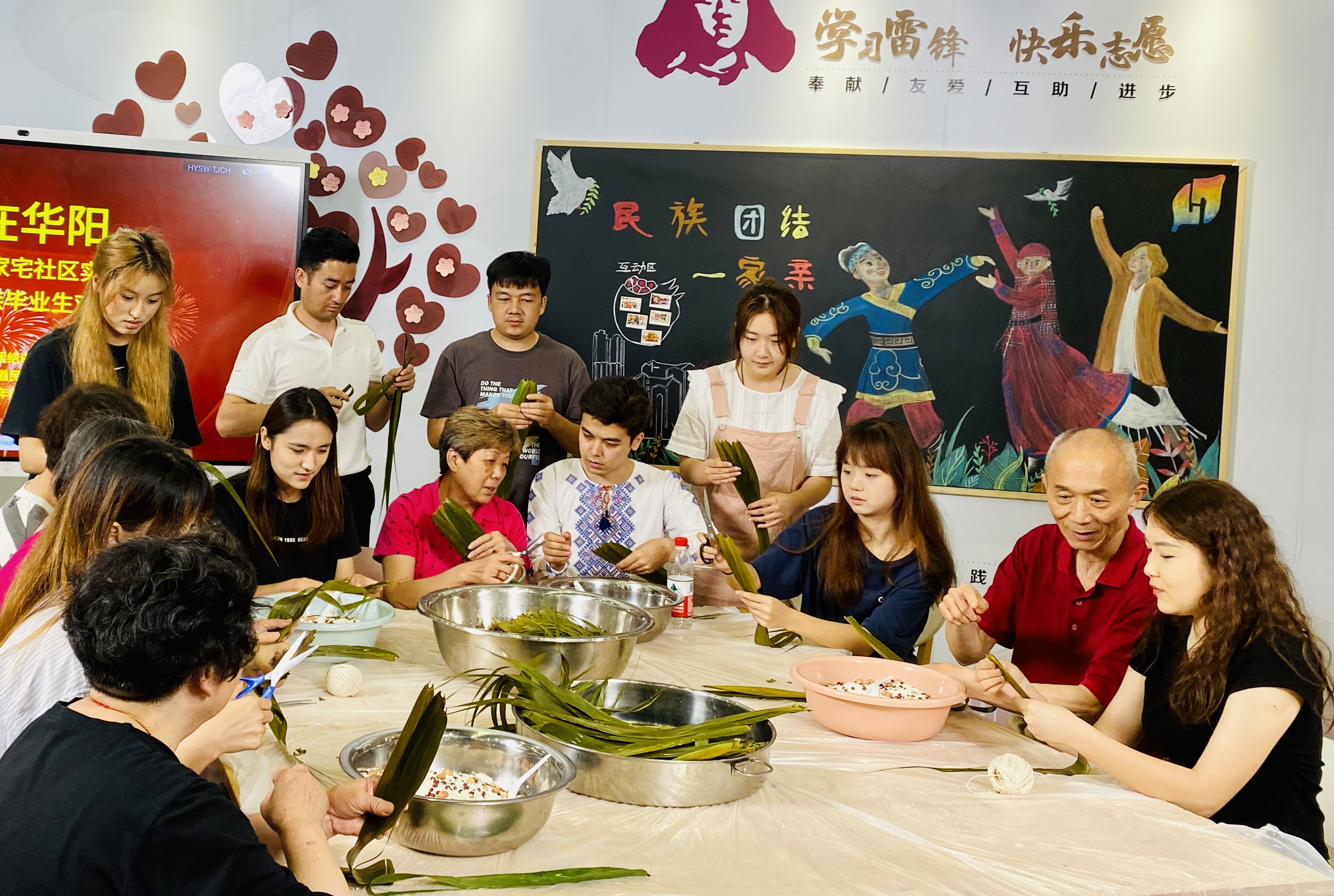 6月13日成人网址 -华阳路街道民族团结进步教育基地充满了各民族师生和居民的欢声笑语。临近端午节又恰逢毕业季,成人网址 少数民族学生前往华阳路街道,与街道干部和居民一起学习民族宗教法律政策,学习包粽子,毕业生街道干部居民互送礼物,充分发挥“基地”作用,有形有感有效开展民族团结进步教育。