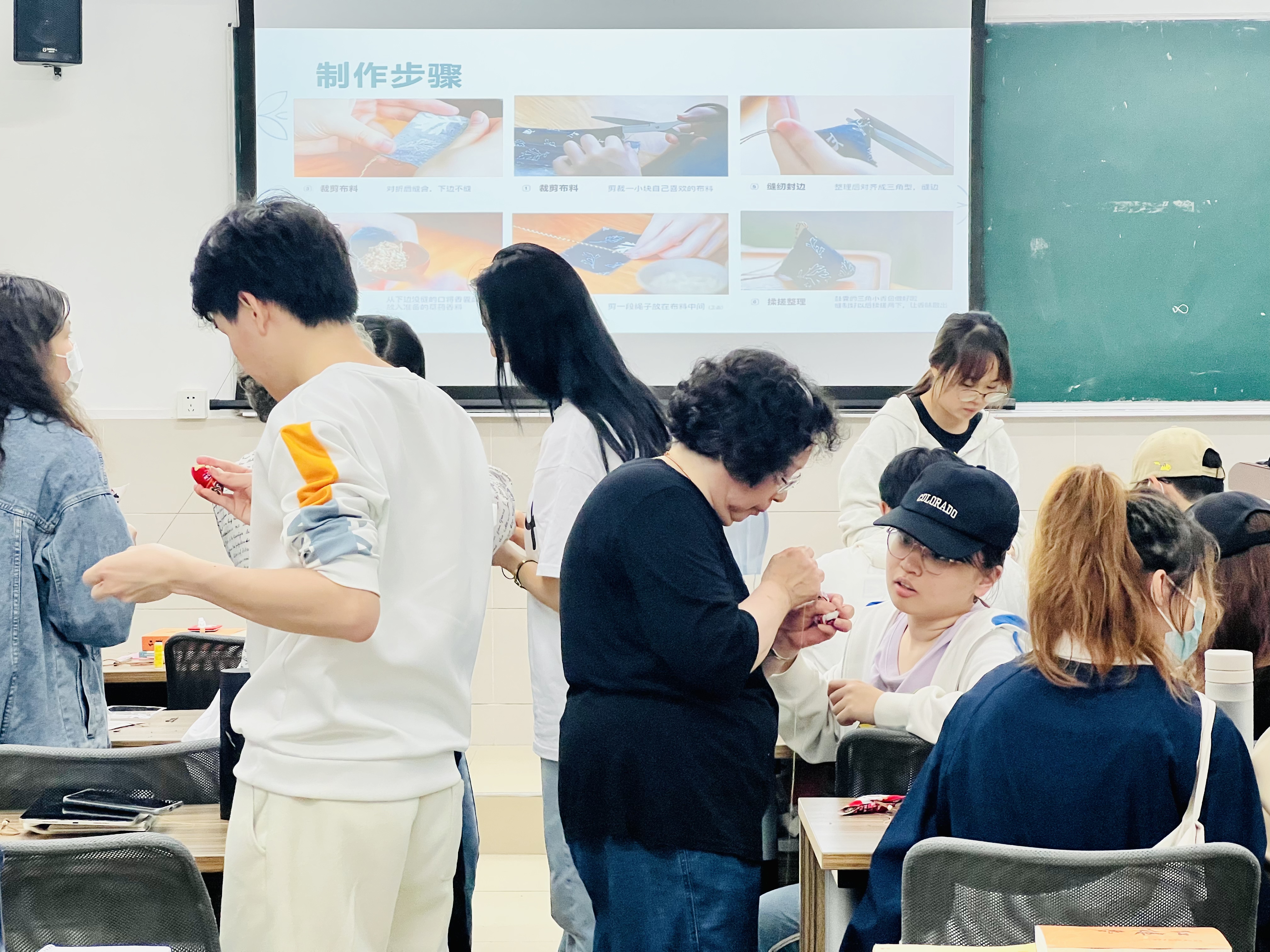 日前,成人网址 少数民族学生开展“我艾香囊”主题团日活动,邀请华阳路街道居民到学校来,教各民族同学做香囊。结合团日活动从历史维度学习端午节的由来,向爱国诗人屈原学习“路漫漫其修远兮,吾将上下而求索”的精神,培养“亦余心之所善兮,虽九死其犹未悔”的豪情与高尚品德,从文化的维度学习端午节期间进行的民间系列庆祝活动,在亲身体验中学习中华优秀传统文化,用心去体验传统节日蕴含的意义,坚定文化自信。