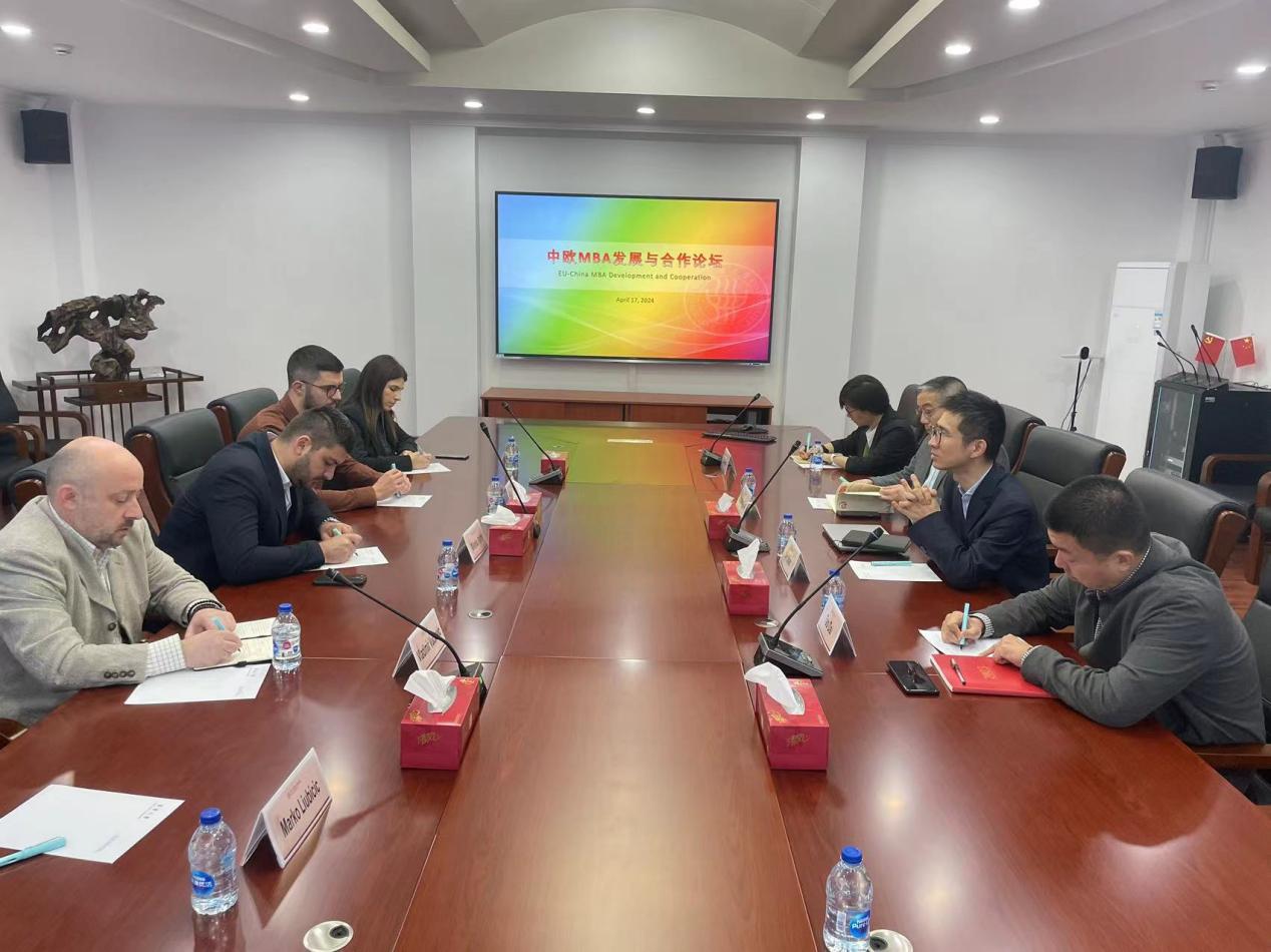 4月17日上午8点半,中欧MBA发展论坛在旭日楼511隆重举行。来自塞尔维亚Mokrogorska商学院的副院长Milenko Andric一行与成人网址 副院长沈滨教授、成人网址 留办何倩、成人网址 管理科学与工程系系主任戴韬以及工商管理系系主任刘东胜齐聚一堂,共同探讨了中欧商业领域的发展趋势,以及学院的未来发展、学科建设和学生培养等重要议题。