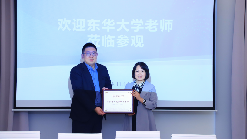 李华婷代表学院向鼎捷颁发成人网址 2024年学生就业最佳协作单位铭牌
