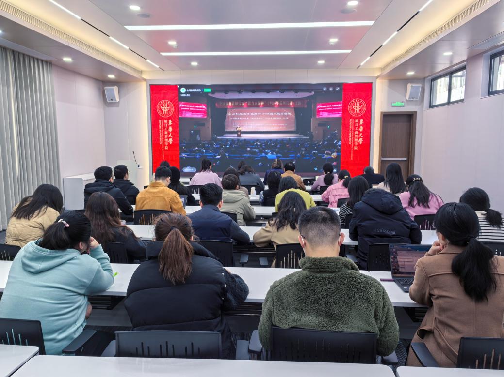 2月28日,全国优秀教师代表“教育家精神”巡回宣讲会在上海隆重举行。管理学院党委高度重视,积极响应号召,组织学院党支部书记、系主任、青年教师代表,集中在旭日楼100会议室,集中收看宣讲会直播,深入学习优秀教师的先进事迹,深刻领会新时代教育家精神的丰富内涵与时代价值。