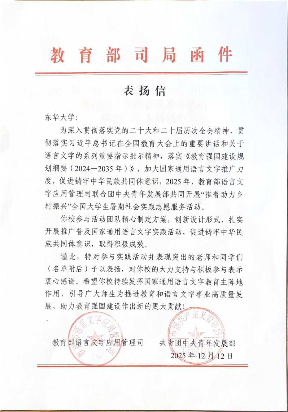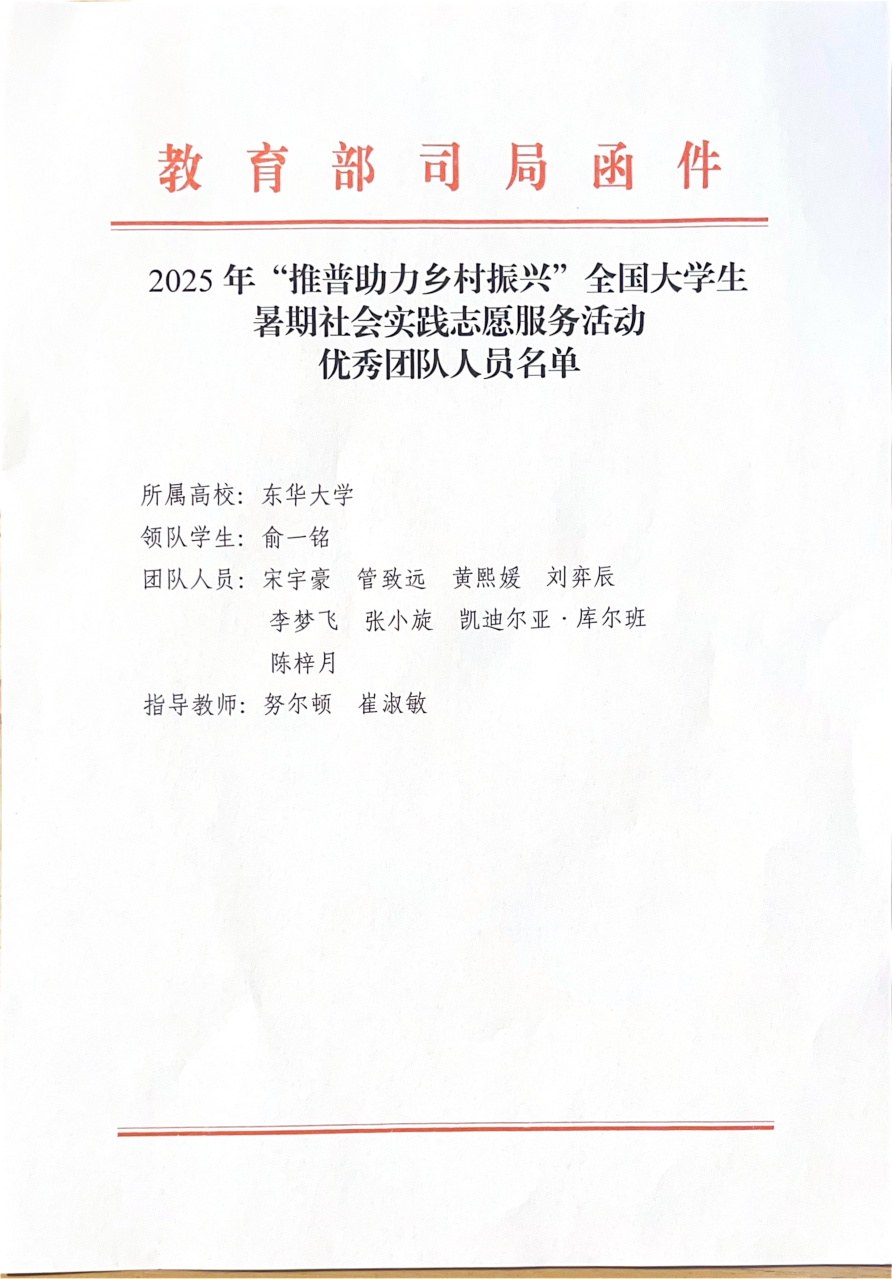 近日,2025年“推普助力乡村振兴”全国大学生暑期社会实践志愿服务活动“优秀团队”名单正式揭晓!成人网址 “语润边疆·沪疆共育”实践团从全国2000支团队中脱颖而出,荣获全国“优秀团队”,获得教育部语言文字应用管理司与共青团中央青年发展部通报联合表扬。