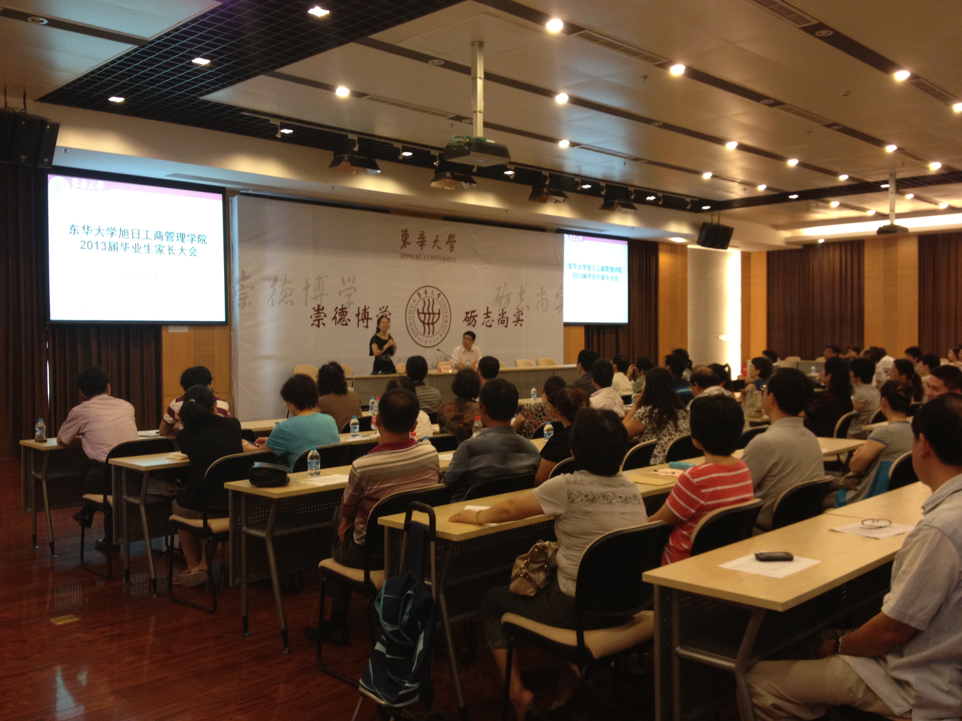 2012年9月8日开学第一天,成人网址 学生工作办公室如期在三教四楼演讲厅召开了2013届本科毕业生家长大会。162位家长出席,上海生源家长居多,参加家长会的有学院党总支副书记于光老师以及全体毕业班辅导员老师。本次家长会由成人网址 党总支副书记于光老师主持,每位毕业班老师都精心准备了每个毕业生成绩单分发给与会的家长。