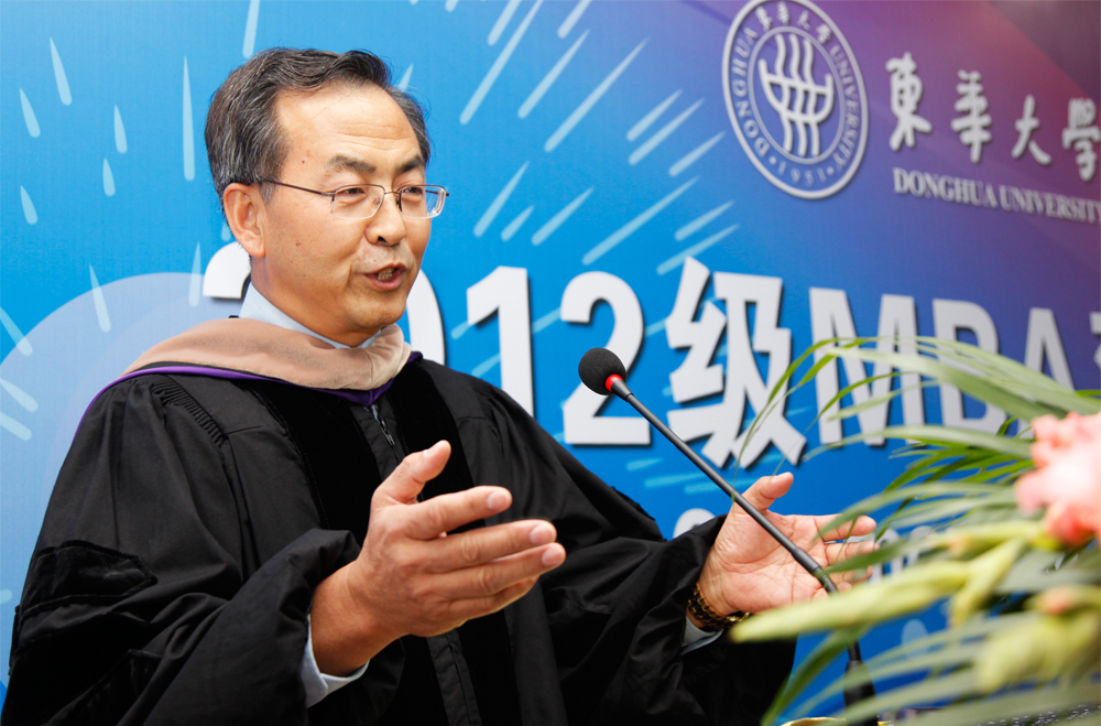 2012级双学位班彭宇哲代表新生作了热情洋溢的发言。他回顾了自己求学东华MBA的艰苦历程,并在今年如愿成为2012级双学位班的一员。他希望全体同学要在学习期间掌握更多的生活哲学和实践经验,以优异的成绩奉献社会、报效祖国。