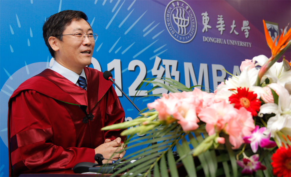 2012级双学位班彭宇哲代表新生作了热情洋溢的发言。他回顾了自己求学东华MBA的艰苦历程,并在今年如愿成为2012级双学位班的一员。他希望全体同学要在学习期间掌握更多的生活哲学和实践经验,以优异的成绩奉献社会、报效祖国。