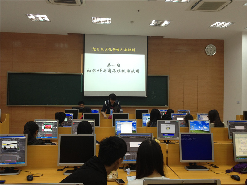 2012年10月26日中午12点,由成人网址 旭日风文化传媒中心主办的内部培训会在延安路校区旭日楼102教室进行。本次培训活动旨在帮助中心同学了解并掌握After Effects软件,为今后在中心更好地合作做出努力。
