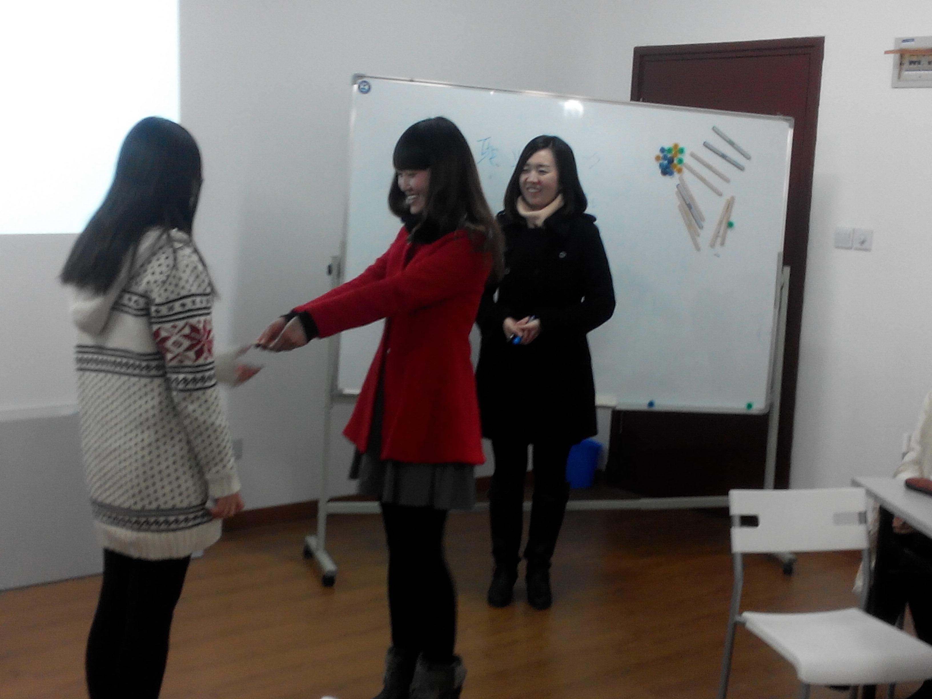 班会主要分为两部分,第一部分是主讲礼仪规范。高加加老师将职场礼仪细化到很多具体的方面,从基本职业着装、站坐姿、介绍、握手、接打电话到用餐的座位等等一系列日常职场中每个人都会遇到的点滴小事。 其中,通过同学之间情景表演所表现出的问题,老师加以指导,使得原本枯燥无味的礼仪知识变得活灵活现,让我们真切的感觉到礼仪在职场甚至生活中的重要性,并且能够对其中的重点印象深刻。而由有相关知识的同学主讲更是将班会推向一个高潮,同龄人之间的讲述更能引起同学的注意及思想上的共鸣。