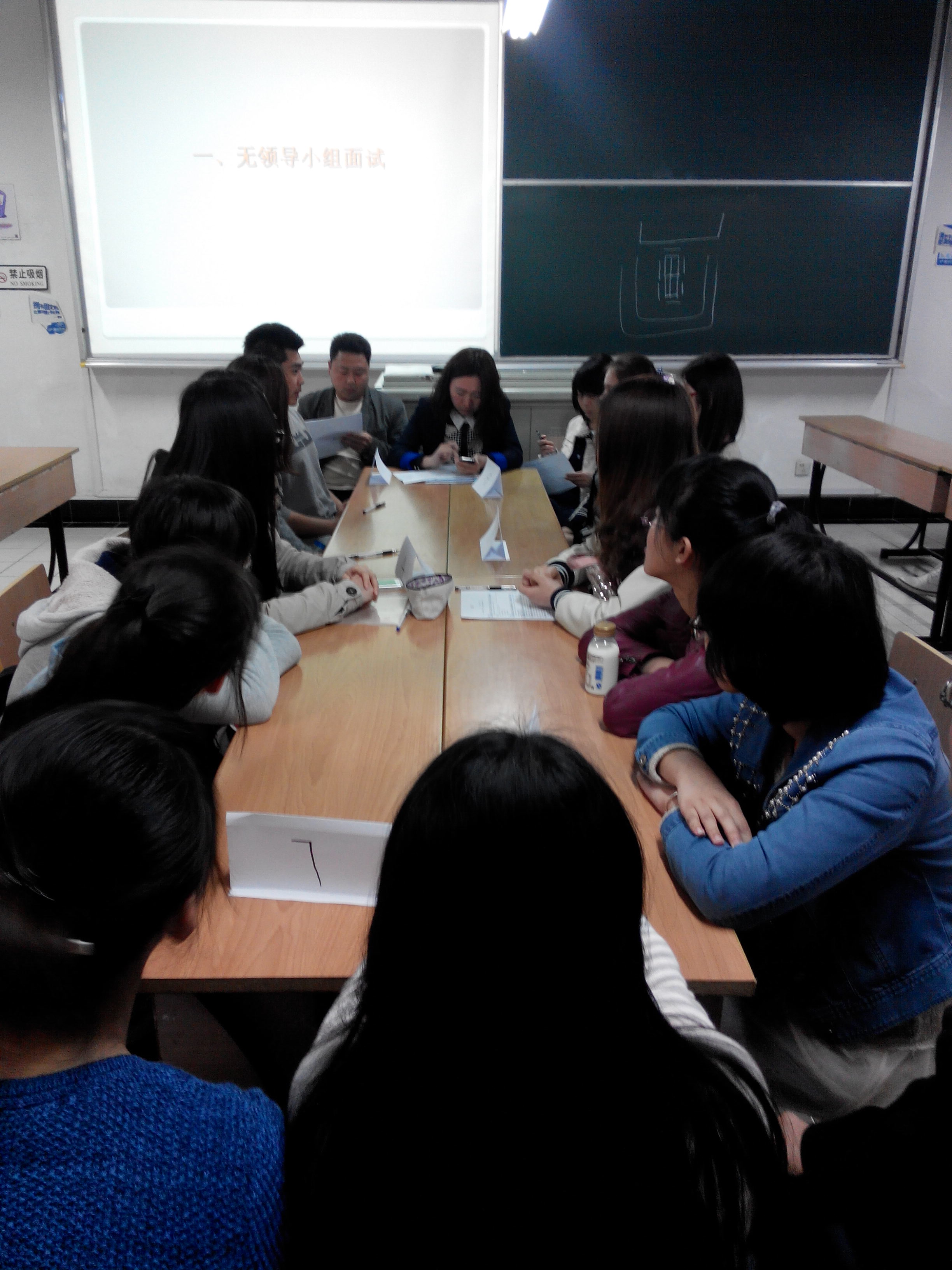 2014年4月14日,“彩虹人生”工作室举办了由高加加老师主讲的“大学生求职面试体验课”,目的在于增强在校学生应对职场面试需要具备的能力,了解不同形式面试的常见问题、掌握应对技巧通过讲解与实践模拟面试结合的方式,为职场新人们上了生动的一课。 此次体验课的重头戏是无领导小组的模拟面试。每个人自我介绍之后,进入无领导小组面试的核心内容,对“面试官”所给的资料进行20分钟的无领导小组讨论。在小组讨论中,5号“面试者”率先打破沉默的气氛带领其他“面试者”对所给材料进行分析,整个分析的过程比较顺利,虽然“面试者”们都没有群面的经验,面试技巧也比较欠缺,但是能够各抒己见,有不同意见时能够较清晰的表达自己想法,其他人也能根据不同意见进行理智的分析,较少出现不礼貌打断别人的现象,最终在所给时间内讨论得出合理的方案。在听完小组代表陈述结论之后,“面试官”给小组成员五个名额发言进行互评,讲出自己最欣赏的和最不欣赏的成员行为,每个在互评发言的成员都能够客观公平的对小组不同成员的表现进行评价。