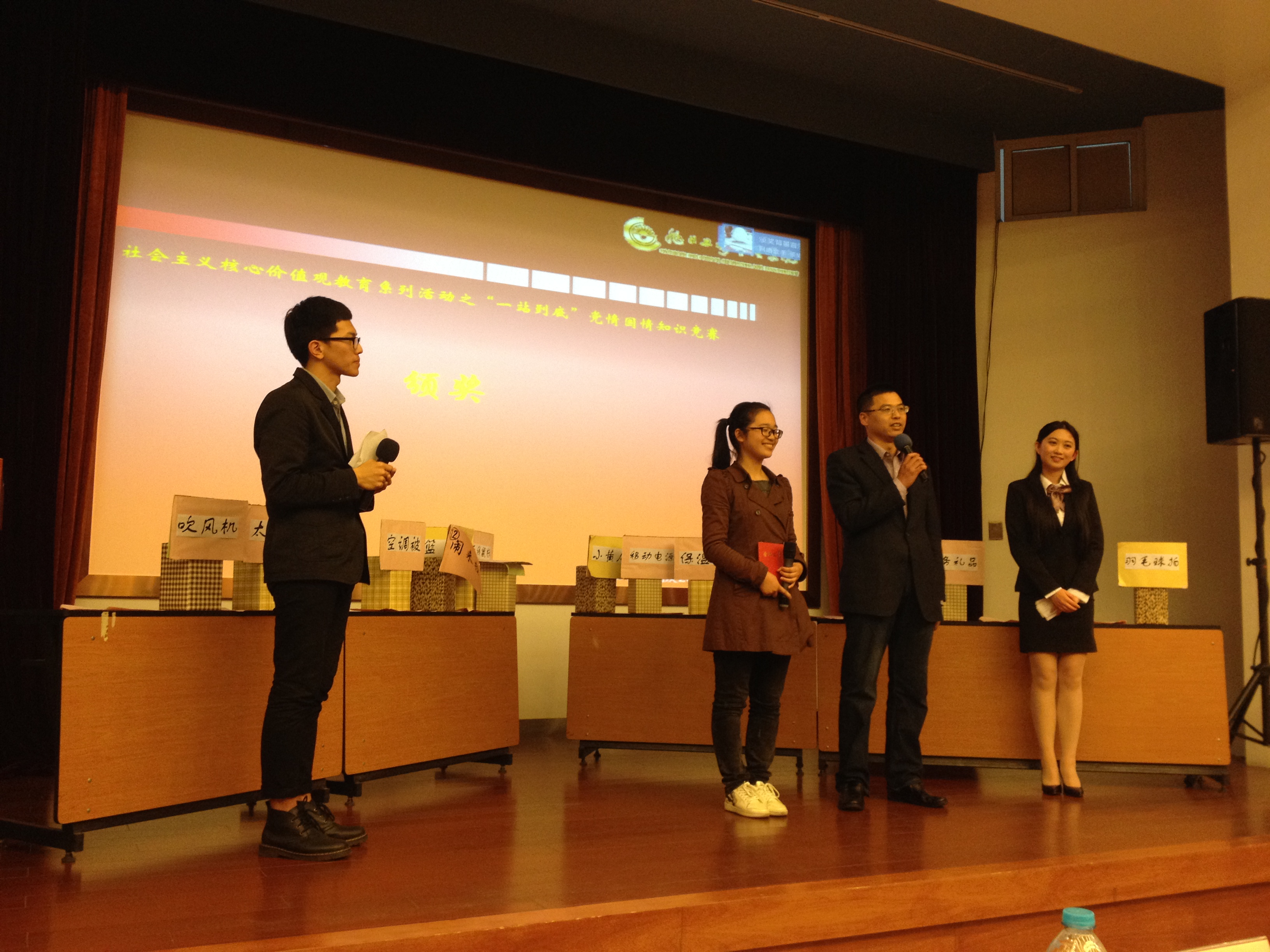 4月22日下午,由成人网址 举办的“一站到底”——党情国情知识竞赛在成人网址 延安路校区旭日楼400演讲厅举行。成人网址 党总支书记林文伟老师、学生处副处长宋德军老师、校党委组织部副部长杜明老师、成人网址 党总支副书记叶晓燕老师以及成人网址 的辅导员老师们参加了此次活动。此次知识竞赛是成人网址 社会主义核心价值观教育系列活动的一项内容,目的是通过知识竞赛的形式普及时事政治常识,激发党员和积极分子关注党情国情的兴趣。