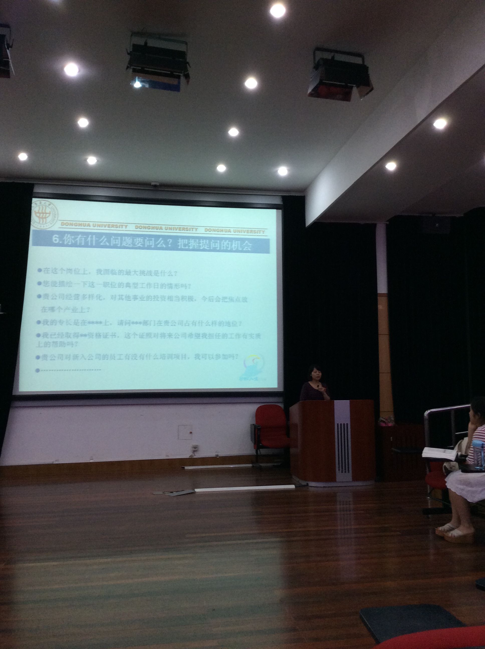 2014年6月10日星期二下午,大三金融国贸以及部分财务营销专业的学生在第四教学楼305教室参加了本学期的第七次主题为面试那些事的专题讲座。本次讲座的主讲人为成人网址 彩虹人生工作室负责人王丽华。 王丽华大家交流分享的内容都是整理了这些年作为学院职业生涯教育主管老师跟众多企业人事接触积累的关于面试选人的一些讯息;彩虹人生工作室的另一主要功能就是整合资源、搭建平台,往后会更多更频繁地邀请企业人来到学校与大家做交流指导,请大家多多关注。王老师的开场方式亲切且幽默风趣,她先了解了一下大家求职面试的经历以及可能存在的困惑,随后讲道,“一个人参与面试的时间只占其职业生涯的百分之0.00111,但正是这不起眼的几个小时却决定你一生的收入,以及事业成就的高度。失败的应聘会使你丧失人生中许闪亮的机会,而你也有可能因此而平庸的度过余生。那么面对强大的竞争对手,职场中必备的5个“C”你掌握了吗?”
