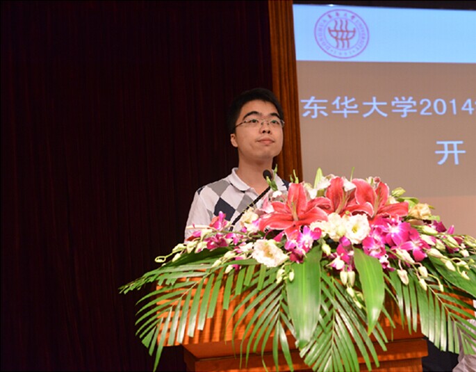 MEM2014级新生代表楼继杰同学做了热情洋溢的发言,对母校的深厚感情溢于言表,表示学生的成功与母校的成功密不可分,同学们会共同努力,打造更强有力的东华学生文化。