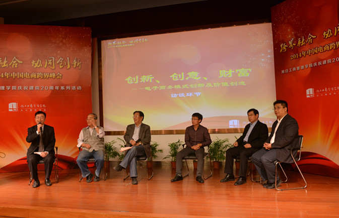 10月18日,由中国电子商务协会专家委员会、上海市商务委员、成人网址 、中国移动商务应用联盟、中国云计算应用联盟等联合指导,我校成人网址 主办的2014年中国电商跨界峰会在延安路校区旭日楼400 举行。来自政、商、学、研等领域的嘉宾围绕“跨界融合,协同创新”主题共同探索电子商务发展趋势。