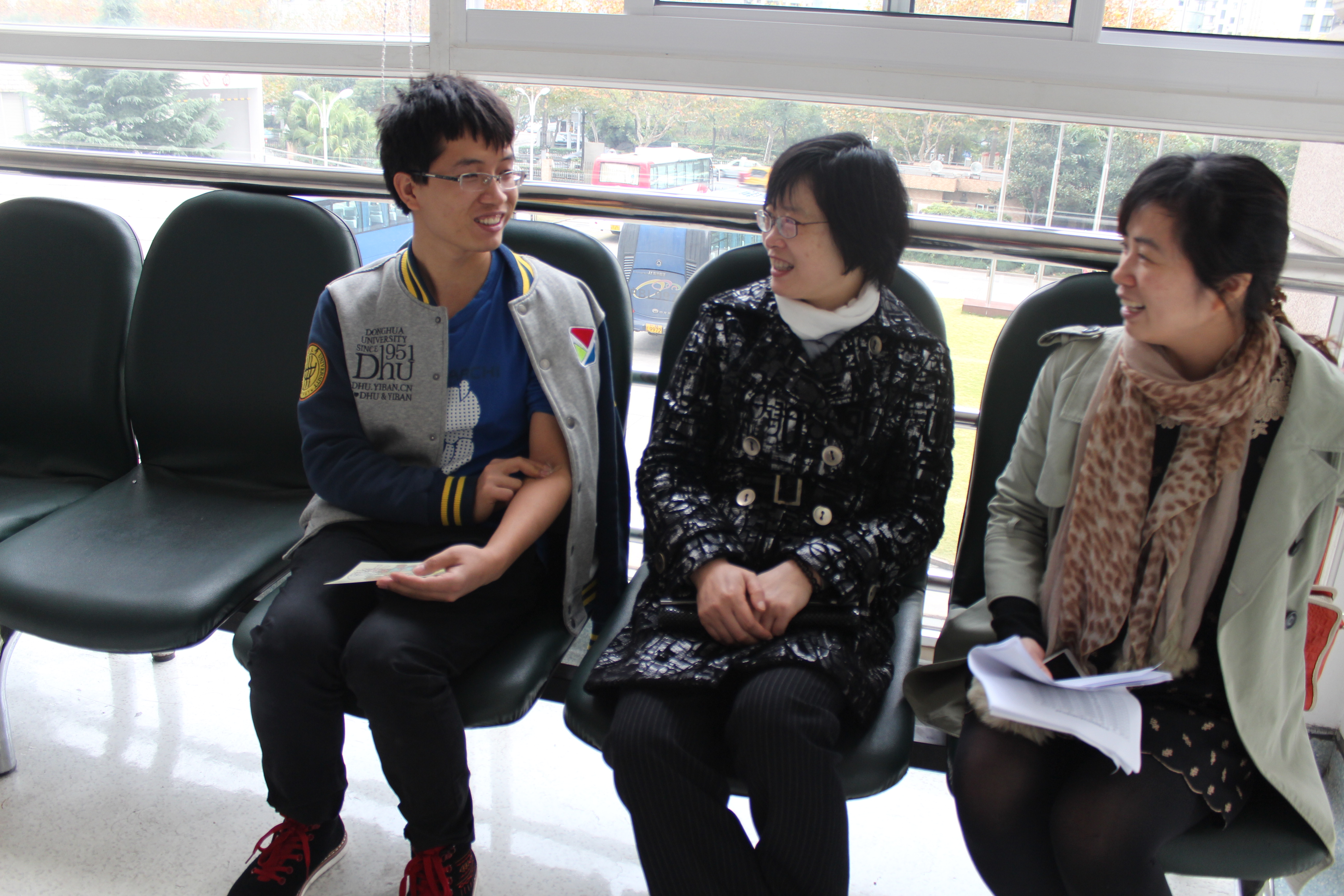 2014年11月27日上午,成人网址 340多名同学在学校校医院的组织下有序地前往上海市血液中心参加了无偿献血活动,最终273名同学成功献血。成人网址 党总支书记林文伟老师、副书记叶晓燕老师亲赴上海市血液中心慰问献血的同学们,学院的辅导员老师们也在现场陪伴着同学们,志愿者管理中心的志愿者们也投入了这次的组织管理工作。