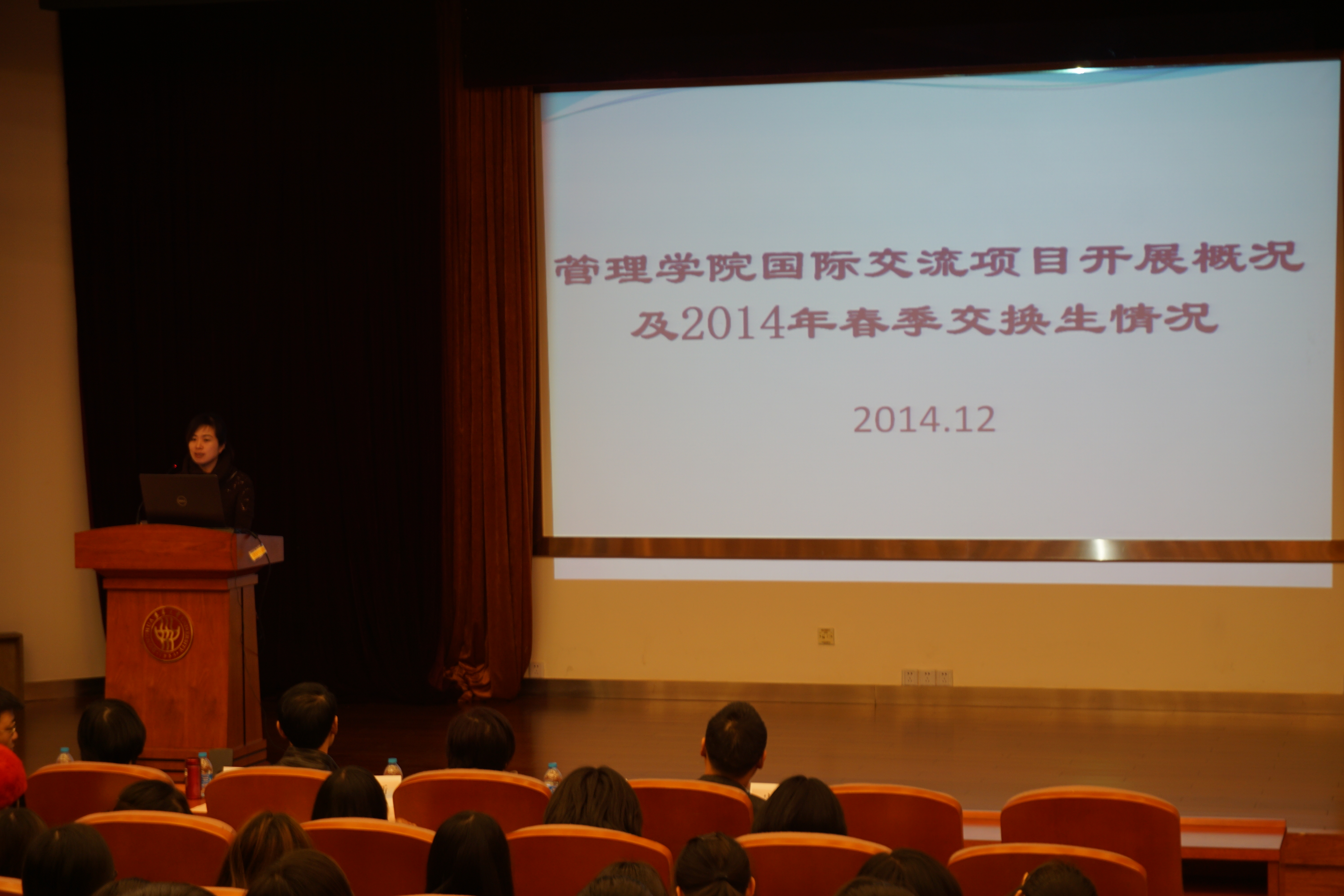 成人网址 副院长沈蕾教授介绍了学院国际合作现状及发展。她指出,国际交流项目是成人网址 人才培养国际化的重要举措,今后也将进一步提升交换学校质量和数量,扩大交换生覆盖范围,实现学院培养与国际接轨的高级应用型工商管理技术人才的目标。 成人网址 自2008年起即已开展了与海外合作的国际交流项目。在学校、学院领导与教师等相关责任人坚持不懈的努力下,已由最初的2所高校发展至目前涵盖了8 个交流合作的国家和地区的14个国家重点大学项目,截止2014年11月份共计派出418名学生参与国际交流合作。