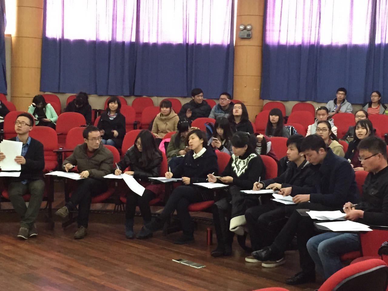 墨韵悠悠,书香浓浓。为深入贯彻落实成人网址 团委、成人网址 党总支关于“弘扬中华优秀传统文化”的工作要求,进一步激发学院学子好读书、读好书的学习氛围,强化学风建设,提升文化修养,由成人网址 主办,成人网址 分团委学生会和成人网址 易班发展中心承办的“中华优秀传统文化读书沙龙”活动正式拉开序幕。 作为读书沙龙活动的第一个子活动——“读书召集令”,在2014年12月29日至2015年2月28日期间开始启动,学院全体同学利用寒假时间阅读以中华传统文化为主题的优秀书籍,撰写读书笔记,心得体会。而在2015年3月1日至3月13日,该活动第二个子活动——“读书分享会”准备就绪,在各团支部内部以主题团日活动的形式开展读书分享活动,最终推选一份“优秀读书笔记”,由成人网址 分团委学生会和易班发展中心初审之后,进行易班平台、DHU小管家微信平台的线上展示,根据得票情况,最终选取了15份优秀读书笔记入围最终的“读书沙龙”汇报展示。再综合线上得票情况和现场展示情况,决出一二三等奖和优秀奖共10名。 3月13日15时30分,成人网址 中华传统文化读书沙龙活动在第四教学楼305室进行最终的汇报展示。出席活动的有江娥、魏冰、陈奉磊、余思宏、吴娅琳、郝明洋、王健华和丁伟八位老师,他们作为活动评委,对本次参与汇报展示的同学进行相应的提问和打分。
