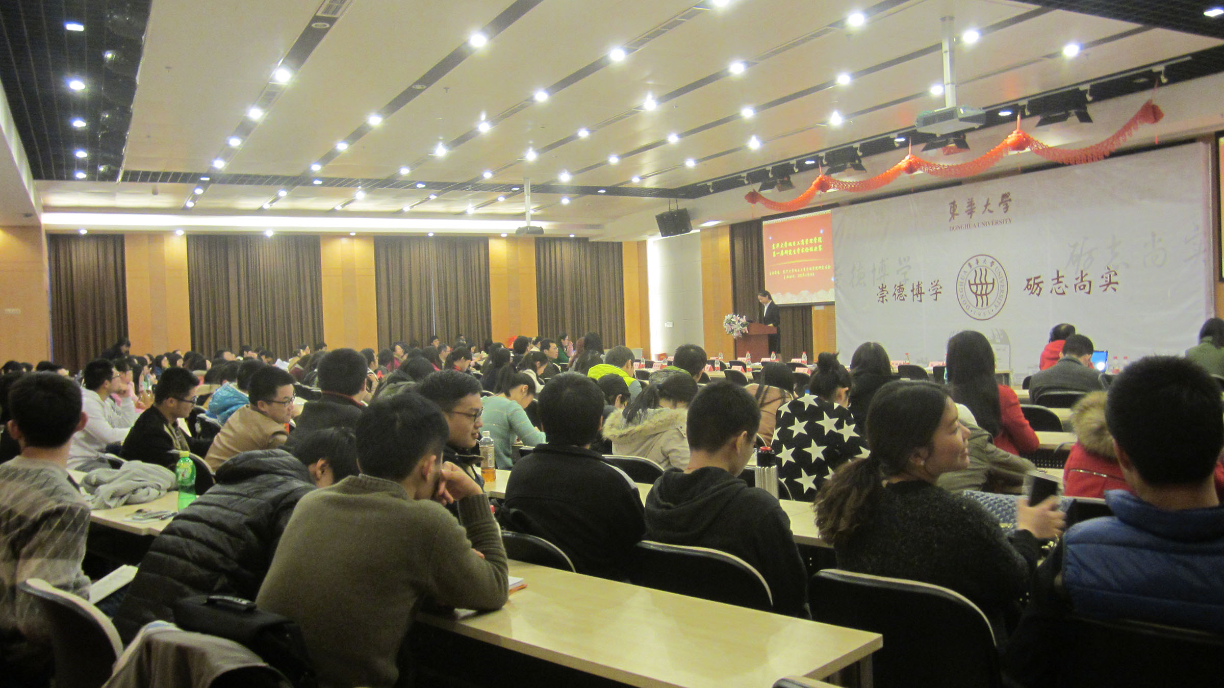 论坛在姚洪心副院长的致辞中展开。学术论坛主要分为选手展示、选手答辩、观众投票、嘉宾总结、观众提问和颁奖环节等。在选手展示环节,每位选手对自己论文的主要内容进行6分钟的PPT展示;在选手展示期间,评委老师使用微信向“东华成人网址 研究生会”公众号发送表情“赞”或者“微笑”作为一次评分依据,并显示在微信墙上,体现了比赛的公正公开;在选手的答辩环节,由评委老师对其论文的内容进行提问,并在答辩结束后根据选手整场的综合表现发送分数(1-5分)至微信墙进行打分;全部答辩结束后,观众通过微信为喜欢的选手投票,3分钟后截止,计票人员统计票数。在投票过程中,同学们也纷纷通过微信墙发表了对本次学术论坛的感想,为严谨的学术比赛增添了一份亲和感,同学们纷纷表示这种学术活动有助于自己学术水平的提升,接触了其他领域的专业知识的同时,也活跃了学术氛围。