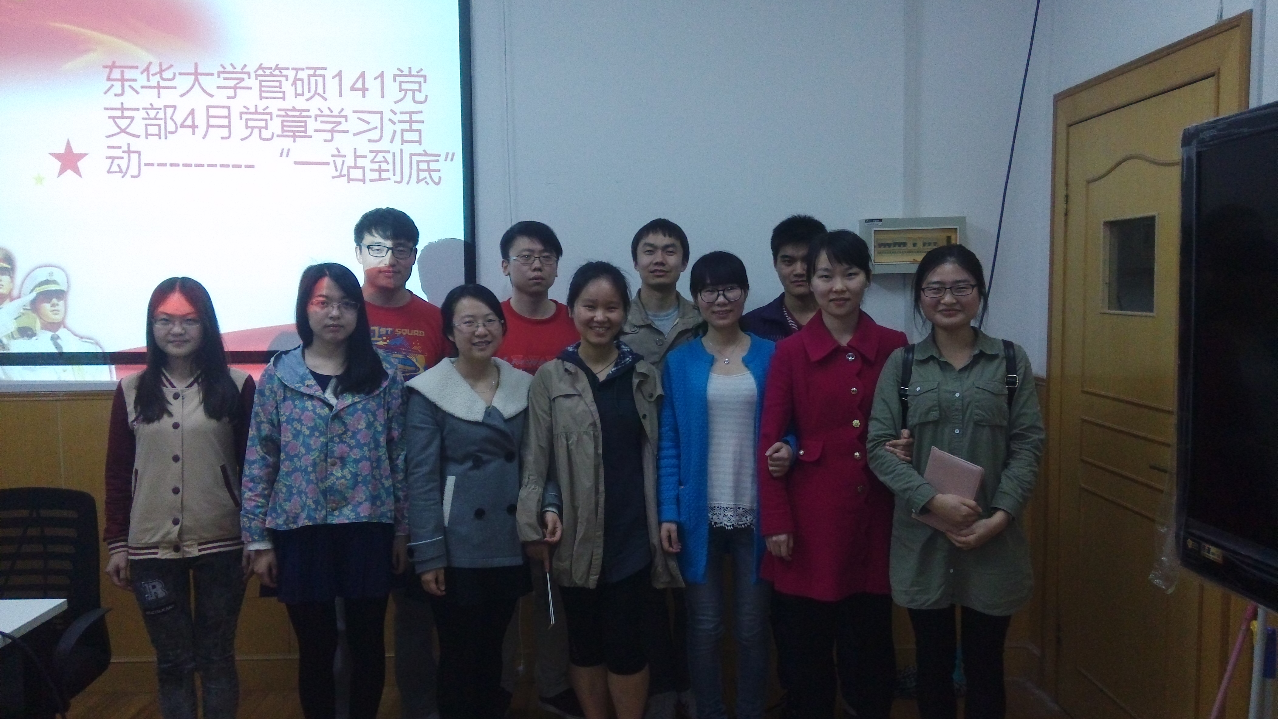为进一步对支部党员及入党积极分子进行党的理论知识教育,引导他们自觉学习党章、遵守党章、贯彻党章、维护党章,成人网址 管硕141党支部于2015年4月23日在5118阅览室开展了党的理论知识竞赛—— “一站到底”答题比赛活动。 晚上6:30在全场热烈的掌声中,在主持人郭文慧和魏新照的一段精彩的开场白后,活动正式开始。开始时,魏新照同学先通过精美的PPT简单地介绍了一下活动的主要流程,并向大家讲述了“一站到底”活动的规则,并由此引出了我们这次活动的主旨,即围绕“学习党章、遵守党章、贯彻党章、维护党章”进行学习与讨论。