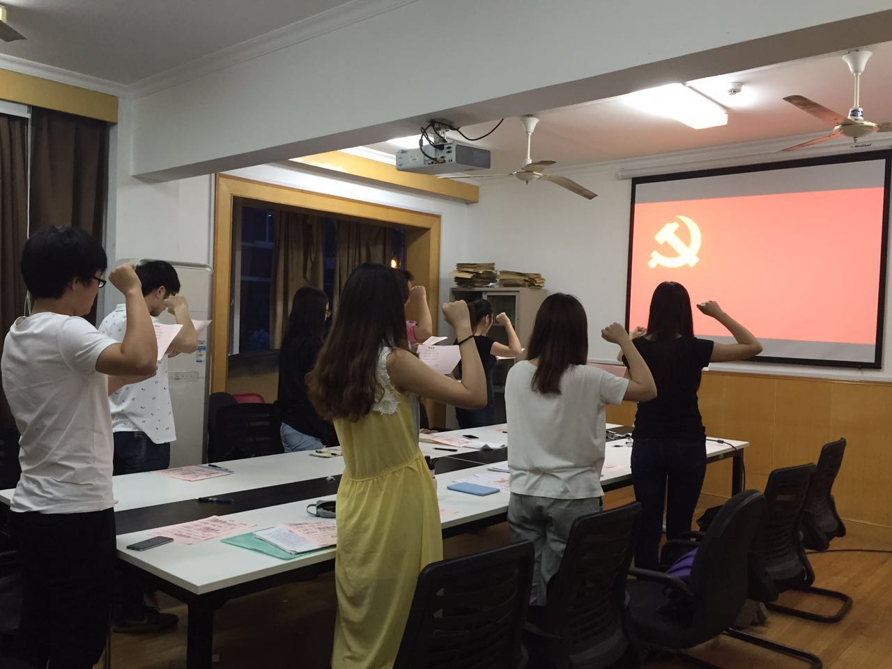 2015年6月8日18:30,蒙蒙细雨的初夏晚上,成人网址 延安西路校区5宿118会议室坐满了一群人,他们是会经学生党支部全体成员,他们有9名学生,1名老师。接下来,这里将要举行该支部的毕业生党员离校教育活动,支部将有5名学生党员即将毕业。学生总会有毕业的那天,而作为一名党员,就要做到一辈子全心全意为人民服务,为共产主义事业而斗争。党员,可能会不断更换党支部,但永远不会有毕业的那天,因为这是一辈子的事!