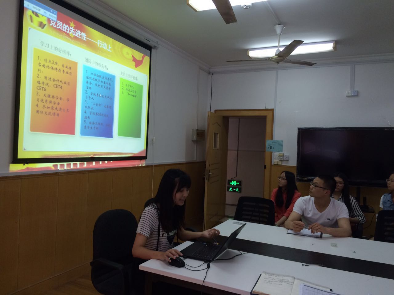 2015年6月15日中午5118会议室,成人网址 举行第二季度学生入党答辩会,成人网址 党总支副书记叶晓燕、特邀党建组织员汤仁清、会经学生党支部书记江娥、党建指导老师吴娅琳、经济第一学生党支部书记郝明洋担任评委,经过各学生党支部考核并顺利通过入党理论考试的17位积极分子参加了本次入党答辩。