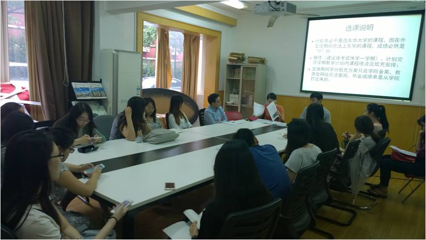 2015年6月16日中午,成人网址 2015秋学生国际交流项目行前辅导会在学生工作办公室5118会议室召开。会议旨在给2015年秋季学期派出的交换生进行学习和生活指导。出席会议的有成人网址 教务员钱敏芳老师、辅导员郝明洋老师、italk学生国际交流协会干事。