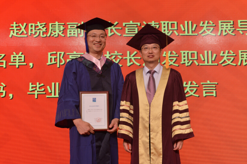 随后,2015届毕业生代表刘宗君发言。他回首过在往两年多的学习日子里,他和同学重新回到学校,回到课堂。每个同学都努力抓住每一次上课的机会,吸收教授们的精华,通过学习,优化了自己的知识结构,提升了自己的管理能力,通过交流,开阔了个人视野,建立了互补的平台。研究生学习是他们人生中浓墨重彩的一笔,而成人网址