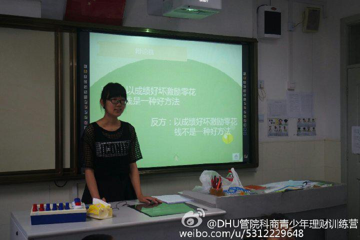 从7月11日开始,来自成人网址 科学商店的队员们来到位于长宁区的天山、虹桥社区,以爱心暑托班的形式,在社区活动中心举办“青少年理财训练营”。在为期半个月的活动中,队员们通过小游戏、小故事等喜闻乐见的形式,让社区小朋友快乐度过暑期的同时,学习基本的金融理财知识。 学习管理零花钱,签署零花钱协议 活动第一天,队员们开展了一场关于“以成绩好坏激励零花钱是不是一种好方法”的小小辩论赛,小朋友们踊跃发言,争相发表自己的见解,气氛十分活跃。在稍后的小讲座中,队员们为小朋友讲述关于金钱的小故事,在开拓眼界的同时让他们懂得父母挣钱的来之不易,并让每个小朋友与父母签订零花钱协议,保证以后一定会好好利用零花钱,把每笔钱用在刀刃上。