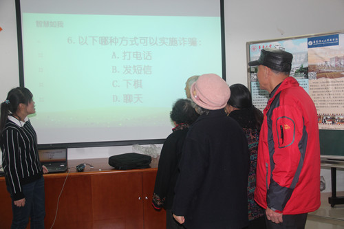 成人网址 分团委书记丁伟介绍:当前中国社会已步入老龄化,特别是作为国际大都市的上海,人口老龄化问题更为严重,随着老年人口的不断增加,一些不法分子将行骗目标对准了这个庞大的群体,骗术多种多样,防不胜防,成人网址 科商本着服务社区、便民利民、回馈社会的宗旨,举办中老年防诈骗科普志愿服务工作,既能够引导学生学以致用,又能够普及中老年防诈骗知识,是高校与社区的“双赢”。