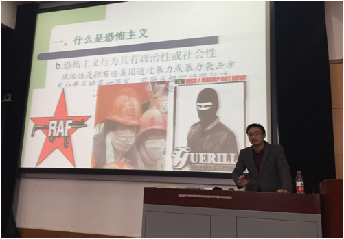 首先,徐老师播放了几段恐怖袭击的视频让大家观看,包括美国的“911”恐怖袭击、“巴黎暴恐事件”、“昆明火车站暴恐袭击案”等,通过视频使同学明确了暴恐袭击不仅在国外有,在国内也时有发生,反复叮嘱大家外出要注意安全,远离暴恐,珍爱生命。接着,徐老师让同学们谈谈个人对恐怖主义的认识,并随机提问了几名同学,通过同学们的发言可以看出,大家对恐怖主义有普遍的认识:即恐怖主义是通过暴力等发动具有政治性、社会性的反人类活动等。徐老师则用高度概括的定义,让同学们对什么是恐怖主义有了更深的认识,接着讲述了当前国际恐怖主义的特点,当前恐怖主义发展的倾向以及产生原因。同时,介绍了国际反恐合作的必要性,并且强调了由中国传统文化中提炼出的和谐世界理念对消除恐怖主义产生的土壤有非常好参考意义,让同学们明确解决恐怖主义的相关对策。 恰逢反恐法制教育主题班会开展的当天是第一个“4.15全民国家安全教育日”,徐老师带领全班同学认真学习了《中华人民共和国刑法修正案(九)》和《中华人民共和国反恐怖主义法》。同学们传阅学习了法律条例的资料,徐老师有重点地讲解了条款内容并且分享了真实的案例。清晰明确的法律文件以及近在身边的真实例子让同学们切身体会开展反恐怖法制教育宣传的重要性和紧迫性。 最后,徐老师提出大学生应该具备的几点防范意识:第一,树立正确的人生目标;第二,理性看待“朋友圈”;第三,发现暴恐视频文件等材料及时举报;第四,弘扬正能量,做合格接班人;第五,加强身体锻炼,增强反恐自救能力。除了面对面的交流之外,在线上,徐老师与同学们还在易班班级群开展了反恐法制教育班会效果的讨论,同学们都积极留言评论,表示获益匪浅。
