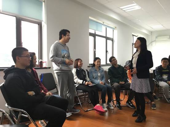 接下来,同学们慢慢放松,没有了之前的局促感,老师又带领我们进行了第二个游戏“你爱我么”。这个游戏类似“抢板凳”。当一个同学找到另一个同学问他:“你爱我么?” 对方如果说“我爱你”,那么他就要把板凳让给发问的同学,这样他就失去了座位。老师适时发问:“如果这个板凳是一份工作,你会把这工作轻易地让给其他人么?”教室里顿时沉寂下来。如果只是一个板凳,大家会因为要好的同学关系彼此谦让,可到了竞争压力比较大的环境中时,我们遇到心仪的工作职位,会因为来之不易而很珍惜。接着老师又提到,在职场,不仅要看公司是否青睐我们,我们也要自问是否认可公司文化。找工作是一个双选的过程,我们不要盲目低估自己,同时也要为找到好工作而做充分的准备。
