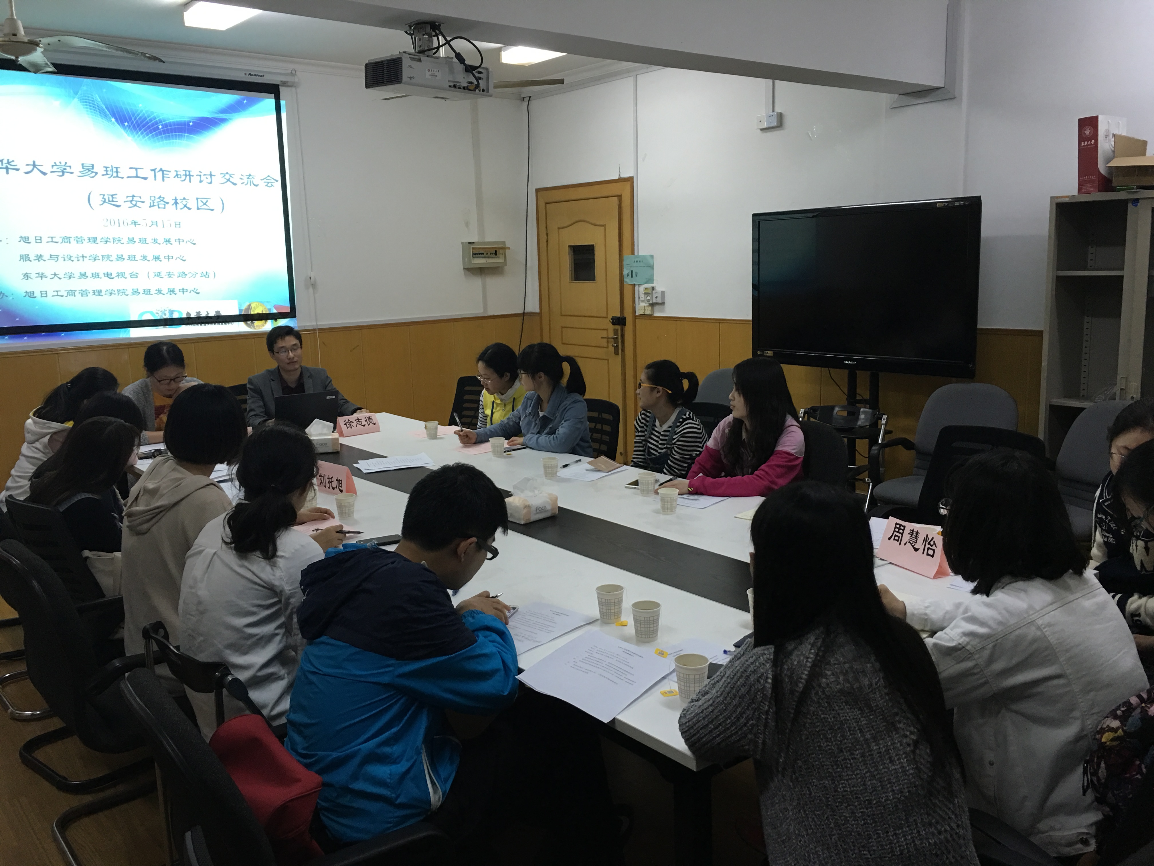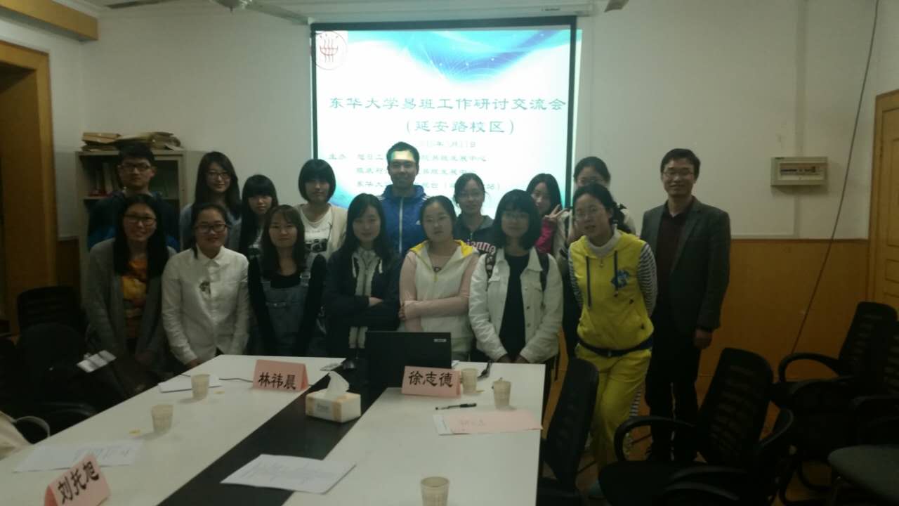 2016年5月15日晚19:30,成人网址 易班工作研讨交流会(延安路校区)在成人网址 学生工作办公室5118会议室成功举行。本次活动由成人网址 易班指导教师徐志德发起,联合服装学院易班发展中心以及成人网址 易班电视台(延安路分站)共同主办,成人网址 易班发展中心承办。服装学院易班指导教师林祎晨和各组织负责人、部长出席交流会。