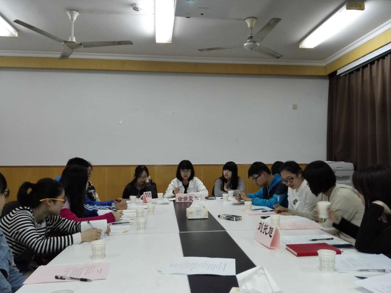 交流会由林老师主持召开,作完简要的自我介绍之后,她宣布大会开始。首先,由徐老师致欢迎词,他对服装学院易班发展中心和易班电视台的负责人能应邀参会表示诚挚的欢迎,指出延安路的易班团队以前都是“各自为政“的状态,缺乏沟通和了解,难以形成有效合力。组织发起这次“联合大会”的初衷是增加相互之间的了解,加强团队合作,探讨共同面临问题的解决之道,共同将本校区的易班工作推上一个新阶段。
