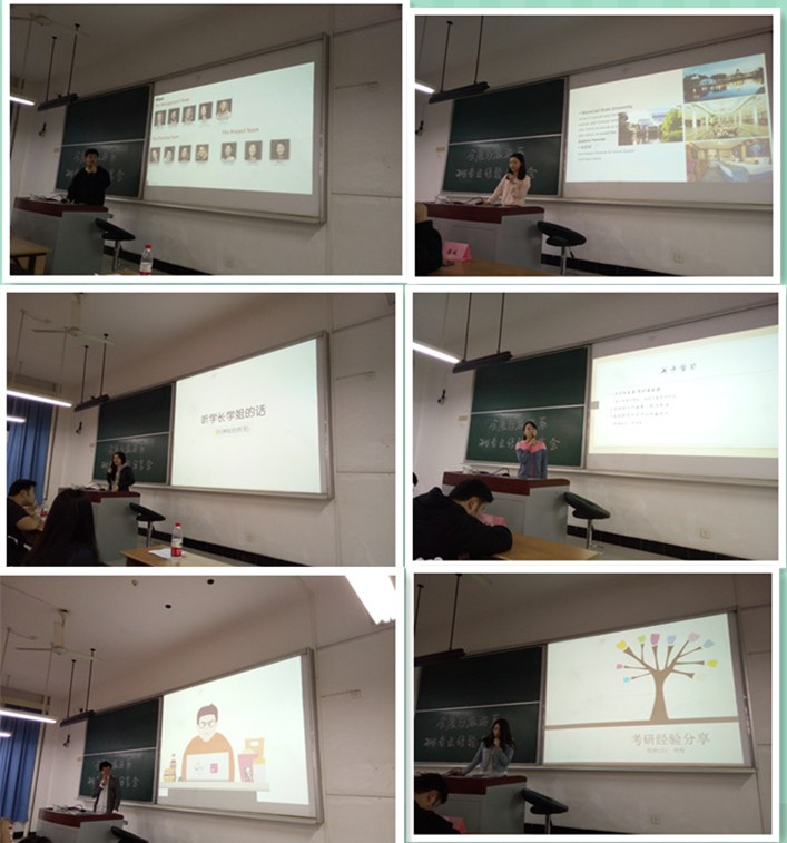 然后,选择国内外升学的2016届毕业生学姐们也给大家做了简要分享。何艳学姐拥有与众不同的大学生涯,她从一个“没长大的贪玩孩子”到勇敢参军磨练,再到无畏追梦,最终圆梦复旦,其中的不易令人赞叹。对于考研,她有的放矢地选取关键信息点给与大家指导,比如如何决定方向和目标,如何制定复习计划、把握时间等。她鼓励大家把心态放平,用努力去成就自己。韩亚男学姐已经被报送至本校研究生,她十分细致的给大家讲解了保研的政策,并结合自身经历,提出一些非常实用的建议,让向往保研的同学有了更清晰的努力方向。伍芮莹学姐即将前往瑞士理诺士国际酒店成人网址