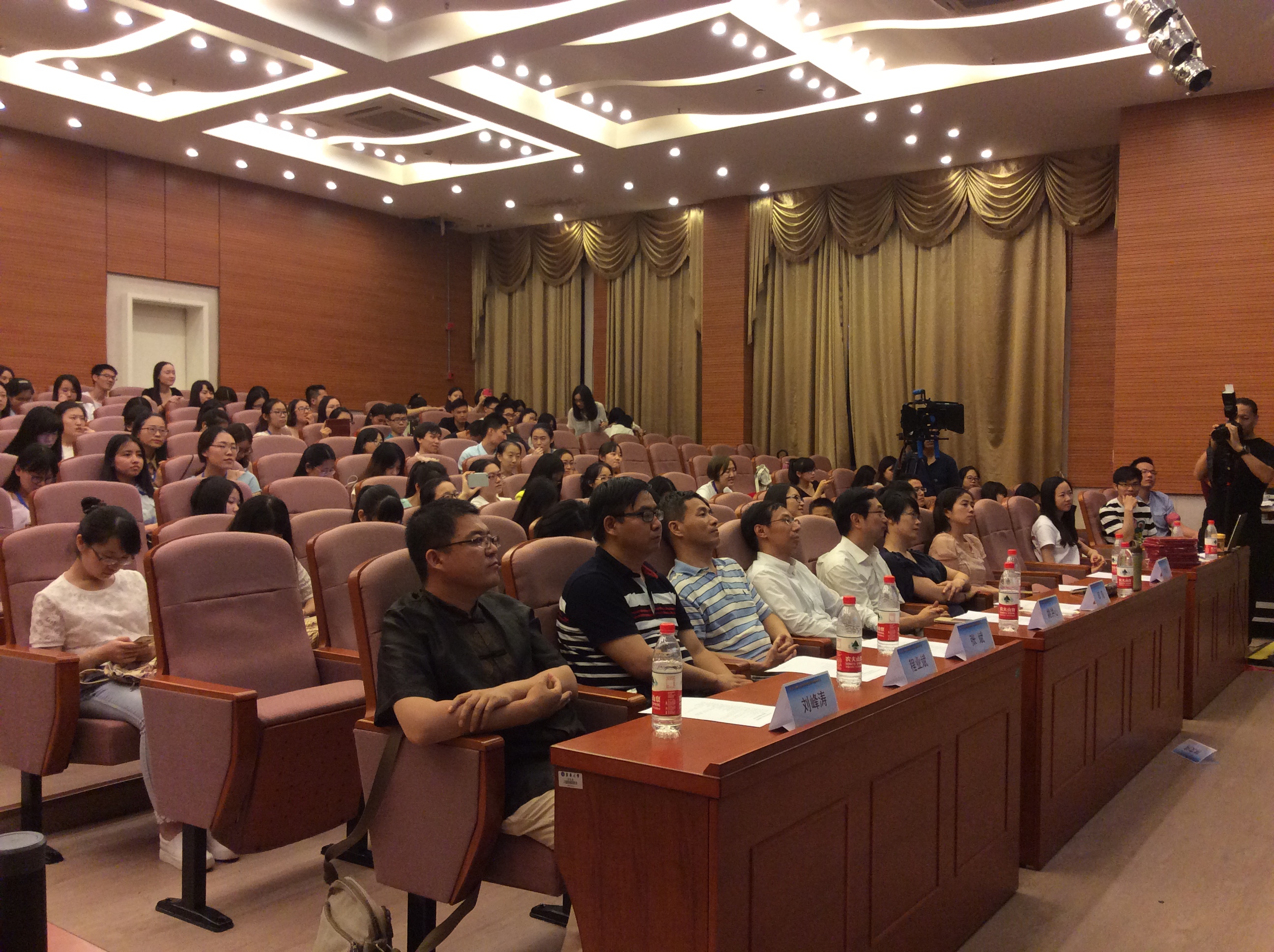 依次宣读本次学术论坛获奖论文名单、优先录用函获得者名单、优秀志愿者名单,并由邱高副校长、林文伟书记、叶晓燕副书记、张斌教授、程业斌副教授颁发获奖证书。结束了一系列颁奖之后,联欢晚会的节目正式开始。十一个节目包涵演唱、舞蹈、朗诵、葫芦丝演奏等多种形式,充分展现营员们丰富的才艺与积极向上的精神面貌。虽然只有短短两日的准备时间,但是营员们却演绎出一台精彩的晚会。